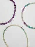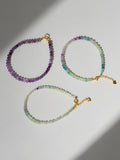 Elevate your wrist with this stunning set of three bracelets. Each one features delicate, faceted stones in beautiful pastel hues, perfect for layering together or wearing individually. A soft, vibrant accent for any look.